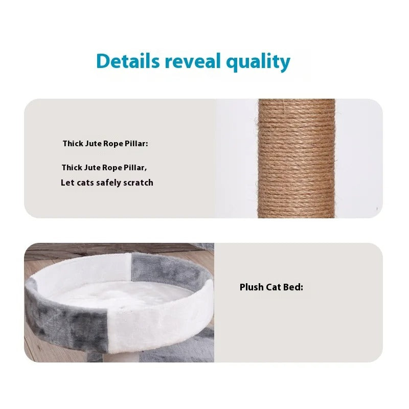 - Comfort Experience: This cat tree comes with a spacious cat condo, a padded perch, and a comfortable hammock. Soft materials create the perfect rest and sleep environment for your cat.