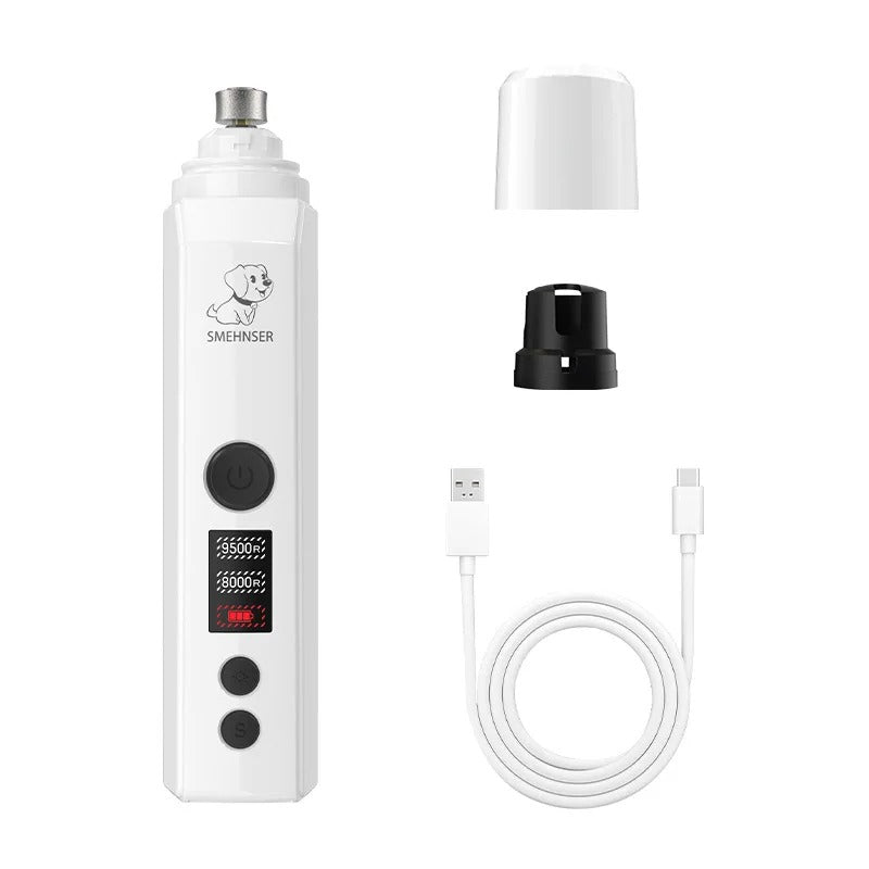 - High Quality: The LED light on allows you to see the location of pets’ nail blood line easier, avoiding over-grinding and hurt. This Dog Nail Trimmer uses a brass bearing motor , comes with 2 Speed fast rotation (7500/9000 rpm). With the features of low vibration and low noise (less than 35 db), your pet will not be afraid to trim nails